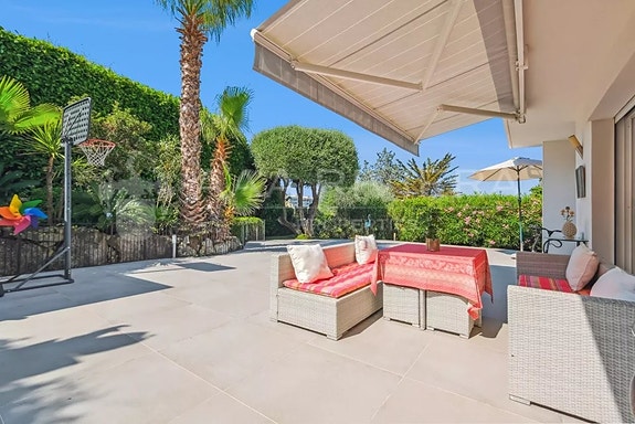 LE CANNET – LES COLLINES / Romslig 4-roms leilighet-villa med 300 m² terrasse, glimt av havet og felles basseng
