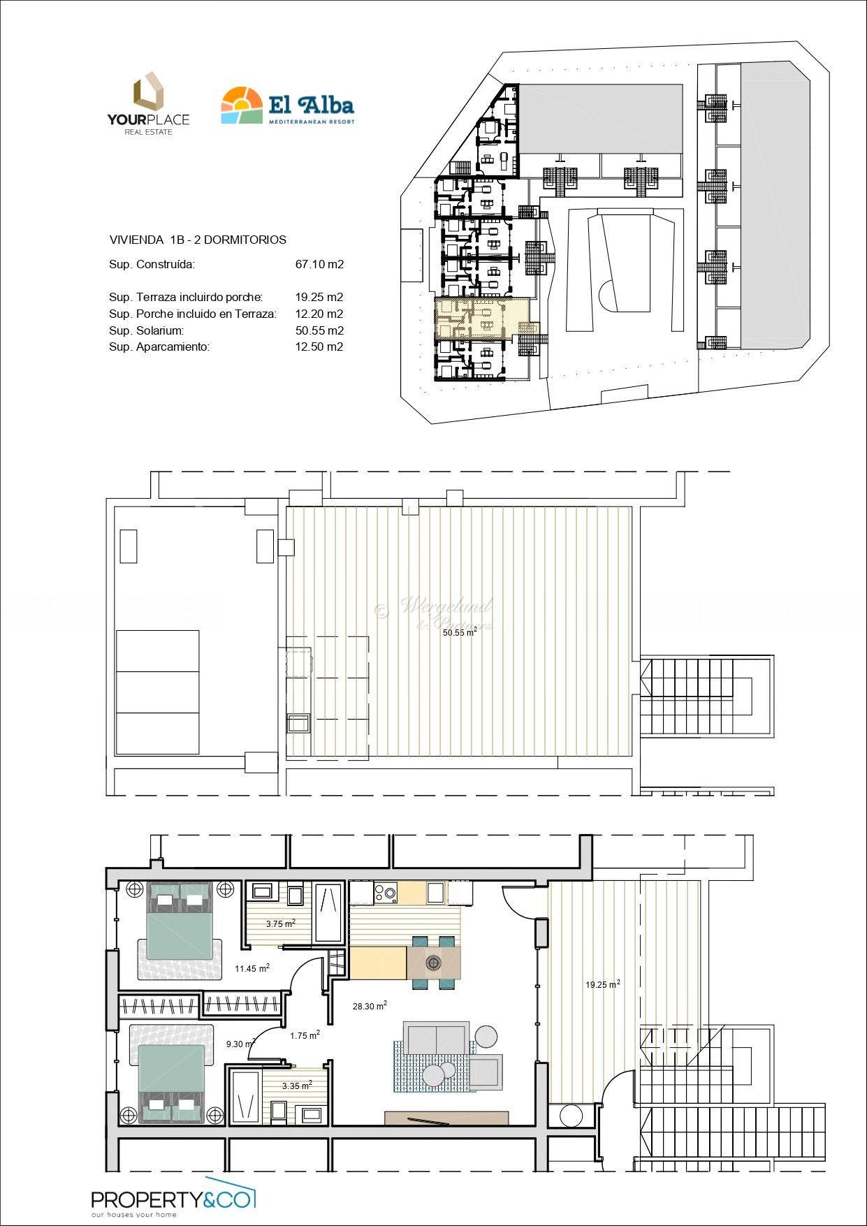 Rainbow Bungalows ligger nordvest inne på El Alba, den nye resorten for alle aldre sør for den spanske landsbyen Roldan. Det vil bli totalt ca. 700 boliger på resorten, som også får et flott felles strandbasseng med strandbar og restaurant. I tilknytning til resorten bygges et nytt shoppingsenter med butikker, barer og restauranter.