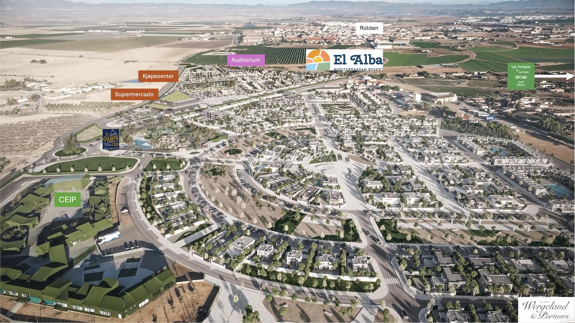 Rainbow Bungalows ligger nordvest inne på El Alba, den nye resorten for alle aldre sør for den spanske landsbyen Roldan. Det vil bli totalt ca. 700 boliger på resorten, som også får et flott felles strandbasseng med strandbar og restaurant. I tilknytning til resorten bygges et nytt shoppingsenter med butikker, barer og restauranter.