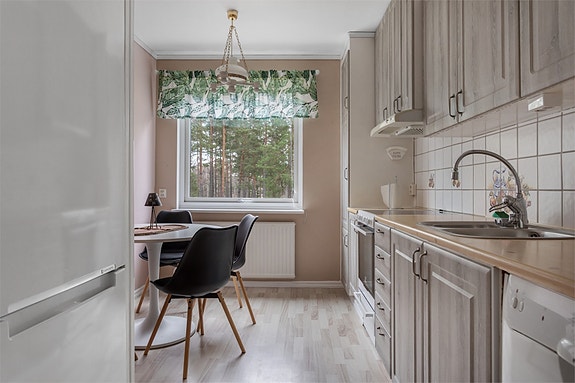 På tredje våningen hittar du denna ljusa och välplanerade tvårumslägenhet – helt inflyttningsklar med genomgående fina ytskikt. Vardagsrummet är luftigt och rymligt, med utgång till en trevlig balkong som vetter mot den parkliknande innergården. Sovrummet har bra storlek och lugnt läge. Trivsamt och fräscht kök som bjuder in till matlagning och middagar i gott sällskap, och välhållet hygienrum.