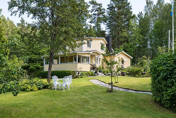 Bostaden omges av en mycket välskött och lummig trädgårdstomt på 1 628 kvm inramad av tät häck och omgiven av höga träd. Gott om möjlighet för både odlingar sociala aktiviteter. På tomten finns även förråd om cirka 5 kvm, växthus, fler härliga uteplatser och en trivsam berså där det bara är att slå sig ner och njuta solen.