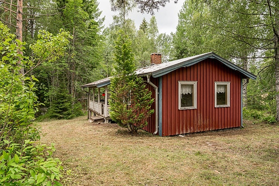 Ett utedass finns på tomten, och viss byggmaterial ingår – en bra grund för dig som vill fortsätta där tidigare ägare påbörjat.