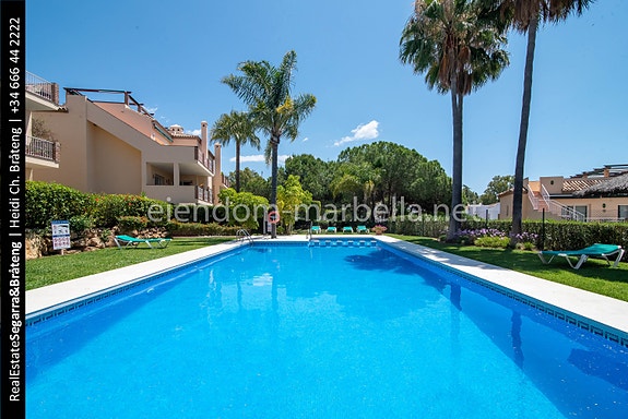 Fantastisk og smakfullt innredet leilighet med 3 soverom og 2 bad med åpen utsikt over hagen og bassengområdet i Nueva Andalucia.