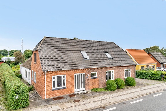 Solid og delvist moderniseret rødstenshus på 158 m2, med masser af sjæl og nyere forbedringer. Tilhørende stor grund på 1000 m2.