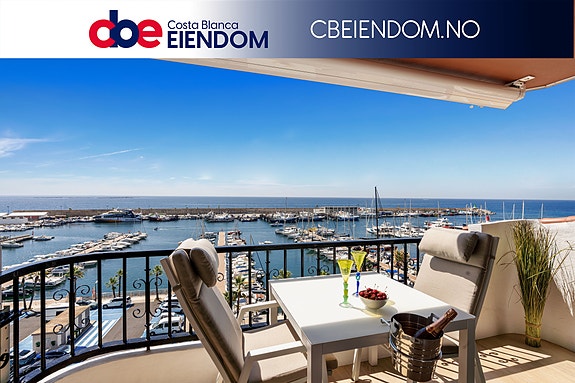 Her får du en moderne og lys bolig med gjennomført høy standard. Leiligheten består av to romslige soverom, et komplett bad, samt en stilfull stue med åpen kjøkkenløsning og direkte utgang til en solrik terrasse. Herfra kan du nyte en uforstyrret panoramautsikt over Middelhavet og marinaen – perfekt for late morgener eller avslappende kvelder.