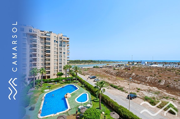 Leiligheten har tre soverom med innebygde garderober og to bad, perfekt for både familie og gjester. Kjøkkenet er separat med egen vaskeromsdel, og stuen har utgang til balkong hvor man kan nyte utsikten over havet, pinjeskogen, marinaen og elven Segura. Boligen er på hele 114 m² og har heis, møbler, hvitevarer og integrert klimaanlegg med både varme og kjøling.