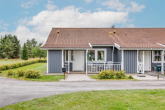 Välkommen till detta trivsamma radhus med allt i ett plan, beläget i ett lugnt och mysigt område med närhet till motionsspår och natur. Här bor du bekvämt med egen uteplats både på fram- och baksida – perfekt för såväl morgonkaffet i solen som för mysiga grillkvällar. På baksidan finns en altan under tak och intill huset finns ett praktiskt förråd för extra förvaring. Tack vare husets hörnläge får du en extra känsla av rymd och avskildhet. Planlösningen är genomtänkt med separat badrum och tvättstuga, ett sovrum med klädkammare, vardagsrum med utgång till altan under tak och ett trevligt kök med plats för matgrupp. Allt är samlat på ett plan vilket gör bostaden bekväm att bo i. Garageplats ingår i avgiften!