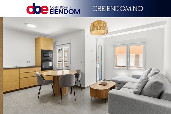 Det moderne kjøkkenet er fullt utstyrt og designet for praktisk og effektiv bruk. Stue og spisestue har direkte utgang til en romslig privat terrasse, ideell for avslapning, sosiale sammenkomster eller som ekstra uterom. Boligen har sentralisert klimaanlegg, som gir behagelig innetemperatur hele året.