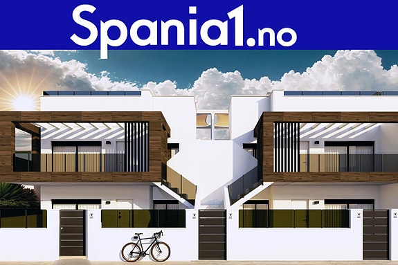 Moderne boligkompleks med flotte bungalower fordelt på to etasjer, kun 2 km fra stranden og rett ved et fredelig naturreservat. Velg mellom leilighet i første etasje med privat hage eller i toppetasjen med stor takterrasse.