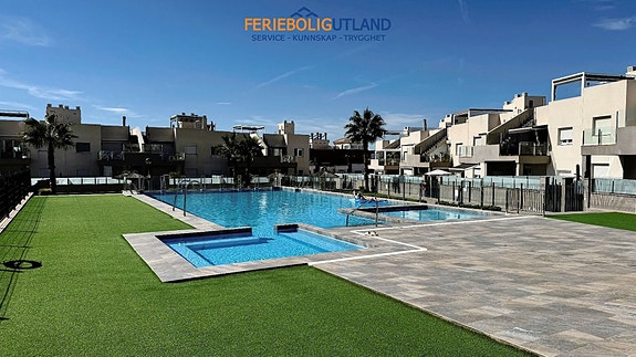 Urbanisasjonen leiligheten er en del av er kjempefin og svært populær – her er det 2 store felles svømmebasseng, oppvarmet jacuzzi, barnebasseng og lekeplass. Med denne leiligheten kommer det også en underjordisk parkeringsplass hvor det er satt inn port som gir mulighet for både parkering og oppbevaring.