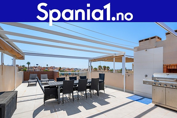 Velkommen til denne toppleiligheten med super beliggenhet i Aguas Nuevas, Torrevieja. Leiligheten har balkong, takterrasse med pergola og grill, samt tilgang til flotte fellesfasiliteter som basseng, padelbane, minigolf og lekeplass.