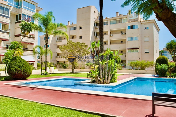 Fantastisk totalrenovert og moderne leilighet til salgs midt i hjertet av Albir, men allikevel i rolige omgivelser i et attraktivt område av sentrum, rett ved golfbanen. Leiligheten består av en lys og romslig stue, et morderne og praktisk kjøkken, tre soverom, to bad (hvorav hovedsoverommet har eget bad) og en stor, sydvendt terrasse med nydelig utsikt over golfbanen og fjellene i Sierra Helada. Leiligheten er svært lys og innbydende, og har blitt renovert med bruk av materialer av ypperste kvalitet. Til leiligheten hører også en lukket garasje og en svært romslig bod i byggets kjeller. Flotte og velpleide felles hageområder med svømmebasseng. Kun 3 min å gå til alt av fasiliteter og 5 min å gå til stranden i Albir.