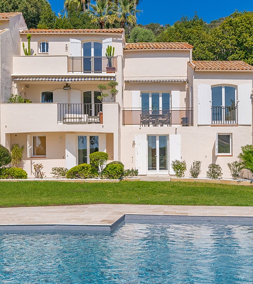 I et veldig fredelig og ettertraktet strøk bestående av luksuseiendommer, finner du dette sjarmerende, moderne 5-romshuset med panoramautsikt over sjøen og flere terrasser i et lite parkområde med et felles svømmebasseng som eies sammen med tre andre heldige eier. La Batterie stranden ligger bare noen få minutters gange unna.