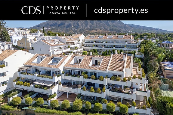 Velkommen til denne lyse og elegante toppleiligheten over to etasjer, med 3 soverom og 2 bad, beliggende i et av de mest ettertraktede og rolige boligområdene i Nueva Andalucía, Marbella. Her får du en gjennomført og moderne bolig med solrike uteplasser og utsikt som strekker seg fra golfbaner til fjell og delvis havutsikt.