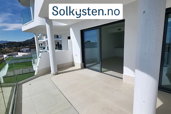 Vi har for salg denne nye leiligheten som ligger plassert i et nytt kompleks på 160 moderne leiligheter i Higueron området. Leiligheten har 2 soverom og 2 komplette baderom. Oppholdsrommet er lyst med åpen kjøkkenløsning. Fra terrassen på 28 kvm har man sjøutsikt mot sørøst og sjøgløtt mot sør.