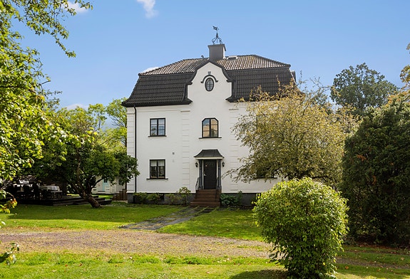 Invändigt möts ni av tre generösa våningsplan där ljuset flödar in genom fönster i alla väderstreck. Huset har varsamt renoverats med stor omsorg om att bevara den ursprungliga karaktären. Här samsas tidstypiska detaljer som massiva trägolv, skjutdörrar, eldstäder och vackra fönster med moderna lösningar som gör vardagen bekväm.