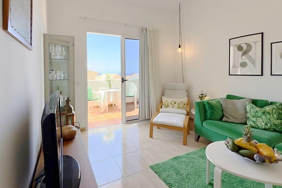 Leilighetsanlegget ligger sentralt til med gangavstand til Arguineguin i en retning og til det populære fjellområdet over Arguineguin i motsatt retning. Gangavstand også til den norske skolen her på Gran Canaria. Dette området, Loma Dos, er det området flest nordmenn med skolebarn har funnet sitt hjem så her er det mulig for barna å finne mange å være sammen med. Leiligheten er moderne innredet og har ekstra stor takhøyde. Havutsikt fra stue med åpen kjøkkenløsning.