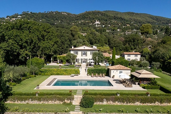Eksepsjonell og raffinert norskeid eiendom: Park på 1,1 ha med bastide, svømmebasseng, tennisbane, gjestehus og vaktmesterbolig.