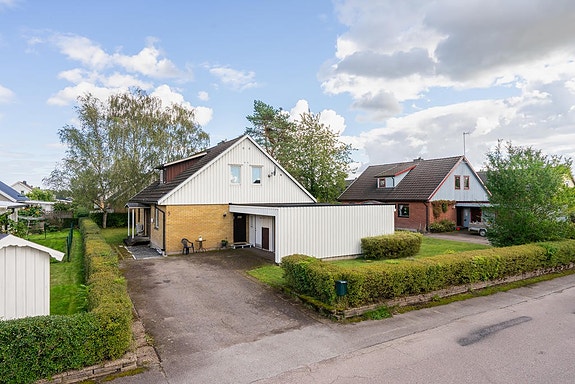 Huset omges av en plan och lättskött trädgårdstomten om 774 kvm som erbjuder gott om utrymme för både barnlek, odling och sociala tillställningar. Här finns också ett vidbyggt garage med förvaring för både bil och redskap.