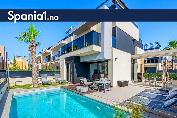 Velkommen til denne moderne og stilrene villaen, perfekt plassert i det ettertraktede området Lomas de Cabo Roig – kun få minutter fra stranden, golfbaner og et bredt utvalg av servicetilbud.