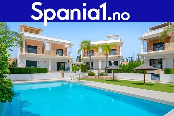 Dette moderne og romslige rekkehuset ligger i det populære boligkomplekset Samara i Ciudad Quesada, Rojales. Med attraktiv beliggenhet i et trygt og livlig område med mange helårsbeboere, passer boligen perfekt for familier, ferierende eller som investering på solrike Costa Blanca. Eiendommen strekker seg over tre etasjer pluss takterrasse, og har totalt 140 m². Den sørøstvendte orienteringen gir rikelig med naturlig lys hele dagen. Boligen har 3 soverom, 2 bad og et separat toalett. Komfortable løsninger inkluderer klimaanlegg i alle etasjer, energieffektive Climalit-vinduer, gulvvarme på bad og kombinert sol-/el-anlegg for varmtvann. Åpen planløsning gir god flyt mellom inne- og uteområder.