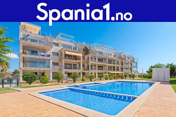 Spania1 har gleden av å presentere en moderne og strøken leilighet i 2.etg med 2 soverom, 2 delikate bad, romslig stue med åpen kjøkkenløsning, samt stor terrasse utenfor stuen. Leiligheten er godt utstyrt og selges med møbler inkludert i prisen. Sørvendt med ideelle solforhold. Det er heis i bygget og underjordisk garasje med parkeringsplass og privat bod. Du har gangavstand til et godt utvalg av restauranter, kafeer og kjøpesenteret i La Zenia. Ønsker du en tur på stranden kan man sykle ned på cirka 15 minutter. Ellers er det verdt å nevne at det er tre 18-hulls golfbaner like i nærheten.