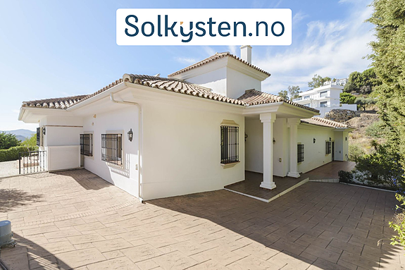 Villaen har en solrik sør/sørvestlig orientering og nyter godt av sol hele året. Det store bassengområdet med integrert varmepumpe er perfekt for svømming selv i de kjøligere månedene, mens de omkringliggende terrassene tilbyr god plass til å nyte solen og de fantastiske solnedgangene over Mijas Pueblo-åsene.