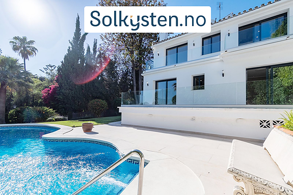 Nyrenovert villa med minimalistisk stil og materialer av høy kvalitet.