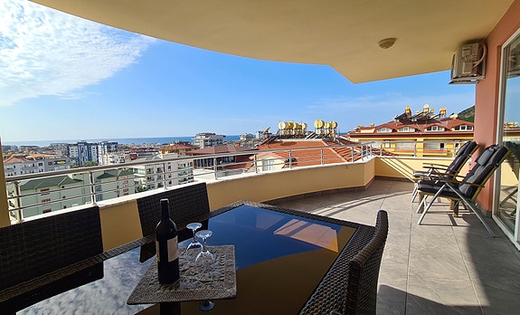 Veldig godt vedlikeholdt duplex for deg med stor familie og mange venner! Leiligheten har 4 soverom, 3 bad, åpen stue/kjøkken og totalt 4 store balkonger med fantastisk utsikt over Middelhavet, de imponerende Taurusfjellene og borgen i Alanya. Hver balkong har plass til utemøbler, spesielt den utenfor stuen er perfekt som middagssted for hele familien.