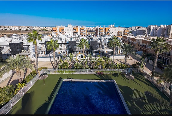 Vi selger vår nydelige og påkostede bolig i det ettertraktede området Los Dolses, kun minutter fra shopping, restauranter, barer, dagligvarer og vakre strender. Dette er en rekkehusbolig over tre plan, og kombinerer moderne design med praktisk bo-komfort. Boligen er i et inngjerdet boligområde. Den romslige underetasjen, med varmekabler og direkte adkomst til garasjen, brukes i dag som en ekstra stue og soverom. Stålrekkverk er montert langs trappene for økt sikkerhet. Hovedetasjen byr på en lys og åpen stue- og spisestueløsning med et moderne kjøkken, vaskerom, soverom og bad. Fra stuen går du ut til en innbydende terrasse. I andre etasje finner man to romslige soverom, begge med tilhørende bad. Det ene soverommet har en romslig veranda/terrasse med utsikt mot bassengområdet. Det andre soverommet har også en egen terrasse. Alle etasjene har aircondition. Første og andre etasje har innebygd aircondition. Den store private takterrassen er innbydende har utsikt over bassengområdet og det pent beplantede grøntområdet i sameiet. På kveldstid kan man nyte den fantastiske solnedgangen fra takterrassen! Eiendommen har en svært praktisk beliggenhet, med gangavstand til lokale supermarkeder, kafeer og restauranter. Kjøpesenteret La Zenia Boulevard ligger kun en kort bil- eller sykkeltur unna, mens de prisbelønte Blue Flag-strendene på Orihuela Costa nås med 5-6 minutter med bil. Man bruker ca. 10-15 minutter med sykkel til strendene. Om området – Playa Flamenca og omegn: Playa Flamenca er et av Orihuela Costas mest etablerte og populære kystområder. Området er kjent for sine vakre Blue Flag-strender, avslappede middelhavslivsstil og gode fasiliteter – her finnes noe for enhver smak. Beboerne har enkel tilgang til internasjonale restauranter, tapasbarer og et livlig ukentlig marked. For friluftsentusiaster finnes det naturskjønne kyststier, sykkelruter og flere anerkjente golfbaner i nærheten. Playa Flamenca har også svært gode transportforbindelser. Man bruker ca. 45 minutter med bil til Alicante flyplass. Dette er en velholdt eiendom i en førsteklasses beliggenhet! Kontakt Inmo Investments ved Alexander Pichlmayr i dag for å avtale en visning ev. ta kontakt her på Finn. Se også "Salgsoppgave" for å komme direkte til meglerfirma med bilder, film og virituell visning.