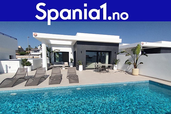 Spania1 presenterer en ny og elegant villa i det ettertraktede området Ciudad Quesada på Costa Blanca. Boligen ligger på en tomt på ca. 300 m² med vakkert opparbeidet hage og privat basseng på 4 x 10 meter – en perfekt kombinasjon av moderne arkitektur, natur og komfort.