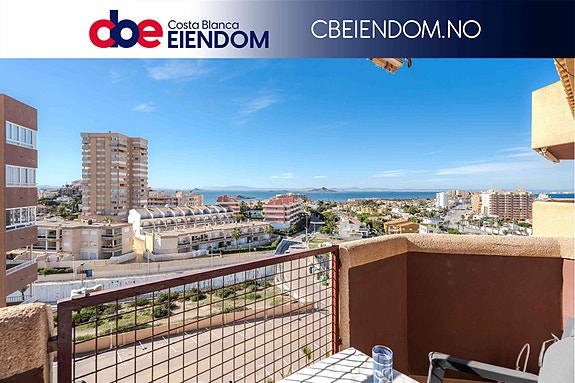Costa Blanca Eiendom presenterer denne flotte toppleiligheten med en helt unik utsikt. Leiligheten har en åpen og lys stue med store vinduer som slipper inn rikelig med dagslys. Fra stuen har du utgang til en solrik balkong med utsikt over Mar Menor – et perfekt sted å nyte solnedgangen og et godt glass om kvelden.