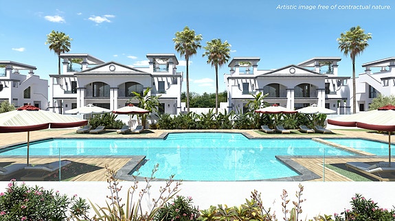 Området består av 13 lave bygninger med tilsammen 50 boenheter. I midten av området ligger en stor felles pool og det er hageanlegg rundt poolen.