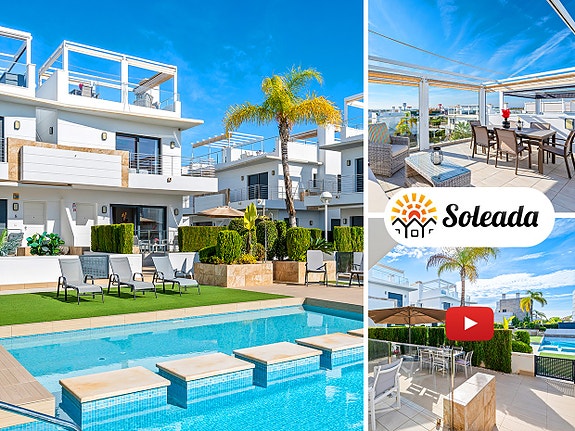 Stor og moderne bolig med hage og takterrasse. Bassengutsikt. 3 soverom og 3 bad. Se Video