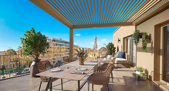 Dette nye boligkomplekset har et moderne uttrykk og ligger sentralt i byen, fordelt over fire etasjer. Leilighetene har fra to til fem rom og byr på romslige oppholdsrom. Disse forlenges naturlig av balkonger eller terrasser som får mye lys, takket være store vindusflater.