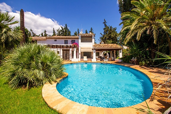 Villaen ligger på en stor tomt på 5749 kvm og byr på en nydelig hage. Her kan man nyte et vakkert svømmebasseng, et boblebad for 6 personer, et grillområde, både overbygde og åpne terrasseområder, 2 åpne carporter - en på 45 kvm med plass til 2 biler og en på 15 kvm med plass til 1 bil; en lukket garasje på 25 kvm, en bod under bassenget på 10 kvm og en annen bod under gjestehuset på 10 kvm; og et stort område med palmer og flere ulike frukttrær.