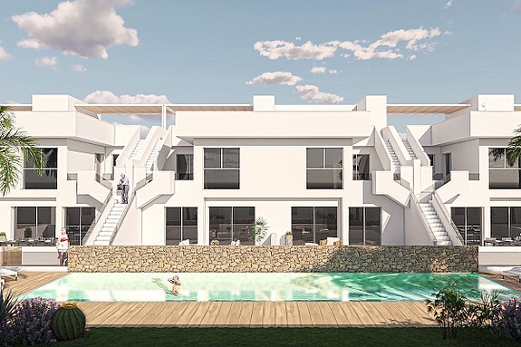 Pilar de la Horadada har en ideell beliggenhet for både permanent opphold og ferier. Denne sjarmerende kystbyen, som ligger sørligst på Costa Blanca, er kjent for sin avslappede atmosfære, tradisjonelle spanske sjarm og utmerkede fasiliteter. Beboerne kan nyte godt av et bredt utvalg av tjenester, inkludert supermarkeder, restauranter, butikker og fritidsområder, alt bare noen få minutter unna. Byen kombinerer det beste av tradisjonell spansk livsstil med moderne infrastruktur og nærhet til havet. Murcia-Corvera lufthavn ligger 40 km unna, og Alicante lufthavn ligger 55 km unna.
