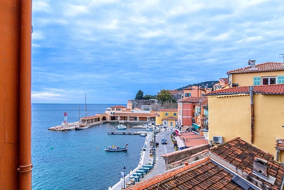 I hjertet av gamlebyen i Villefranche-sur-Mer ligger denne flotte treromsleiligheten, som er totalrenovert med kvalitetsmaterialer.