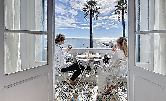 Praktfull treromsleilighet på totalt 69 m² med direkte utsikt mot det azurblå Middelhavet i attraktive Juan-les-Pins. Klassisk eleganse, god takhøyde, vakre paneler og parkettgulv kombineres med moderne komfort.