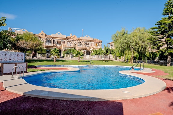 Vakkert renovert rekkehus med 3 soverom og 2 bad med fantastisk havutsikt, bare 1 kilometer fra La Mata-stranden. Dette sjarmerende hjemmet tilbyr både for- og bakhager – perfekt for å nyte sol eller skygge hele dagen. Eiendommen er fullt møblert og klar til innflytting, med lyst og moderne interiør. Beboerne kan slappe av ved det fine fellesbassenget og nyte praktisk tildelt parkering i området.Ideell beliggenhet nær bussholdeplasser, barer, restauranter, butikker, supermarkeder, skoler og apotek – alt du trenger er innen rekkevidde. Et perfekt valg for helårsbolig eller som feriehus på Costa Blanca.