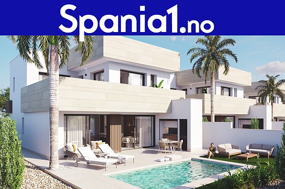 Ny moderne villa med 3 soverom og privat basseng, beliggende kun 750 meter fra Mar Menor-strendene i Santiago de la Ribera. Høy standard, gjennomtenkt planløsning og gode solforhold. Kort vei til strand, butikker, restauranter og golfbaner.