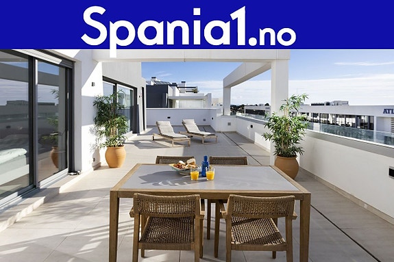 Moderne penthouse på New Golden Mile mellom Marbella og Estepona. Leiligheten ligger i et etablert anlegg fra 2019 med flotte fellesområder, basseng og høy sikkerhet. Her får du romslige terrasser med havutsikt, nærhet til golfbaner, strand, butikker og alle servicetilbud.