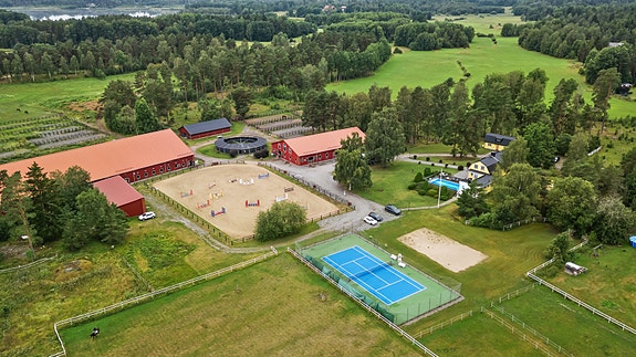 Gården omfattar totalt 17 hektar i ett insynsskyddat läge, mitt i ett av Sveriges mest hästtäta områden. Här finns en total boarea om 458 kvm fördelat på fyra byggnader samt en imponerande fest- och gästlokal med sju övernattningsrum, belägen ovanpå det uppvärmda ridhuset.