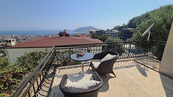 - To balkonger med utsikt mot Middelhavet og Alanyas historiske borg