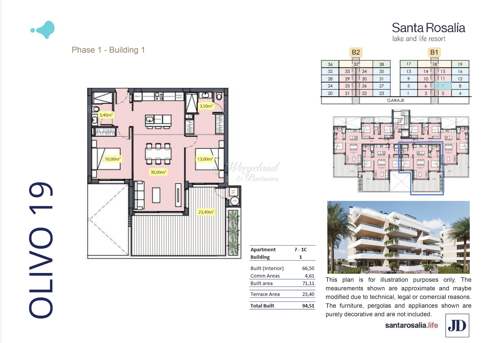 Olivo 19 er et flott leilighetsprosjekt inne på Santa Rosalia Lake and Life Resort. Resorten ligger ved kysten i Murciaregionen på Costa Calida. Det er kun 4 kilometer fra vannet og den populære byen Los Alcazares. Nærmeste nabo til velkjente Mar Menor Golf Resort. Sentralt: Kort vei til strand-aktiviteter-shopping-kultur-spisesteder.