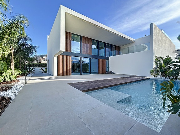 Sentralt i Albir med butikker, restauranter, bussholdeplass og stranden i gangavstand er det oppført en designervilla med et flott uttrykk og særpreg.