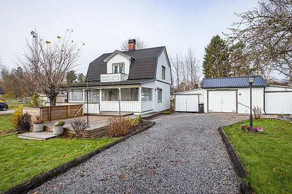 Huset har löpande renoverats och är i fint skick när det nu är redo för nästa ägare. Här välkomnas ni in i bostaden via den rymliga, inglasade altanen. Vidare inne i huset finns en ljus hall, ett trevligt kök, vardagsrum i vinkel med härligt värmande kamin samt plats för både matsalsbord och soffgrupp. På övre plan möts vi av en övre hall med utgång till balkong, nyrenoverat badrum från 2025 samt två sovrum, det ena med eget WC-rum. I källaren finns helkaklat badrum, tvättstuga och fina möjligheter till förvaring. Bergvärme och fiber är ytterligare två stora plus värda att nämna!