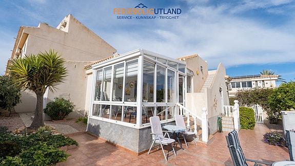 3-roms frittliggende villa med privat sørvendt hage, takterrasse og felles basseng i El Retiro, Playa Flamenca. Reserver