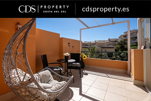 Velkommen til denne flotte duplex toppleiligheten med attraktiv beliggenhet nær Miraflores Golf i Riviera del Sol. Boligen ligger øverst i bygget og byr på nydelig utsikt mot hav, hage og basseng – perfekt for deg som ønsker en lys og komfortabel bolig på Costa del Sol.