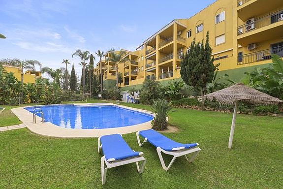 Leiligheten ligger i et etablert golfresort og har en ideell beliggenhet nær både havet og lokale fasiliteter. Kombinasjonen av front mot golfbanen og tryggheten i et inngjerdet område gjør dette til et utmerket valg for den som søker et stilfullt og praktisk hjem i et av Costa del Sols mest attraktive områder.
